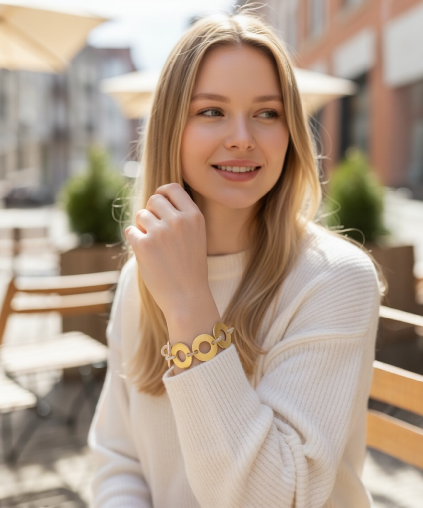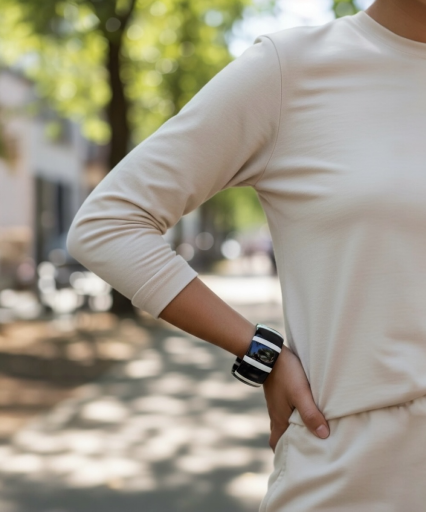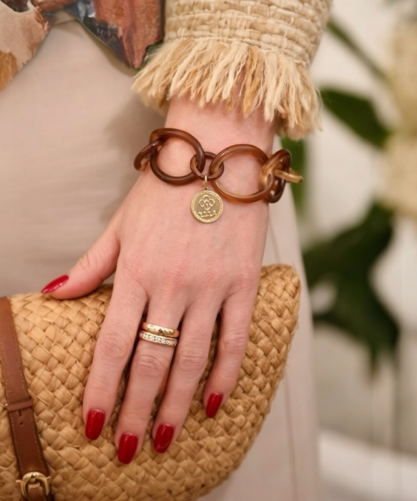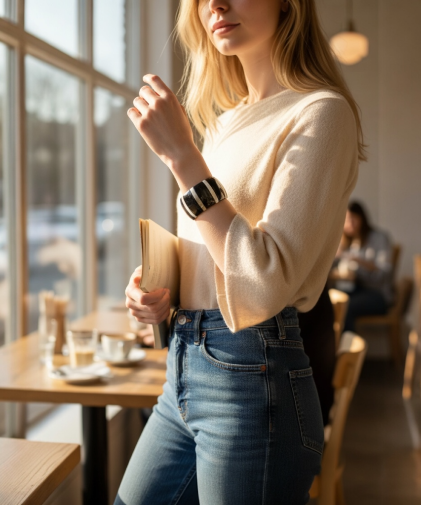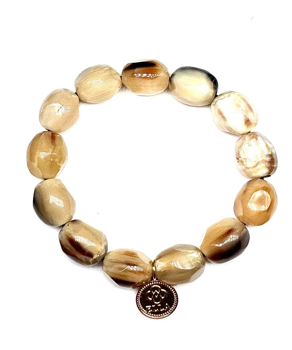 Das natürliche Farbspiel reicht von hellen, warmen Nuancen bis zu tiefen, dunkleren Tönen – ein harmonischer Kontrast, der jedes Armband zu einem Unikat macht. Die elastische Verarbeitung sorgt für hohen Tragekomfort und passt sich dem Handgelenk mühelos an.