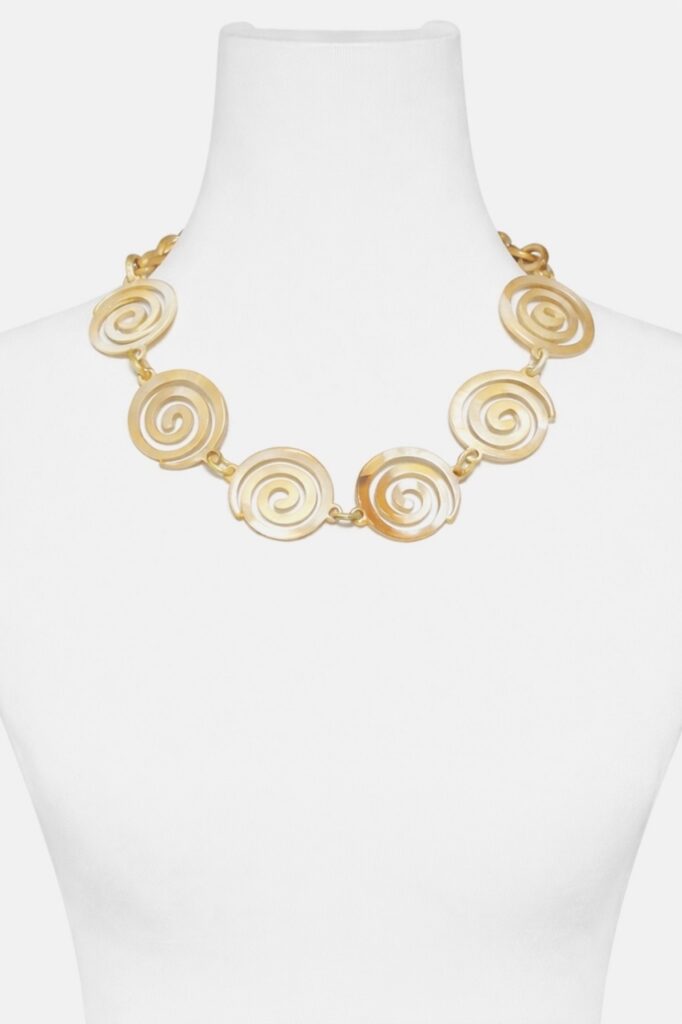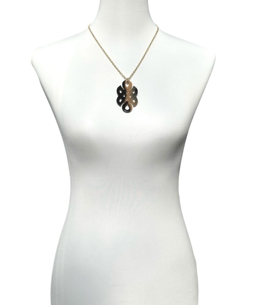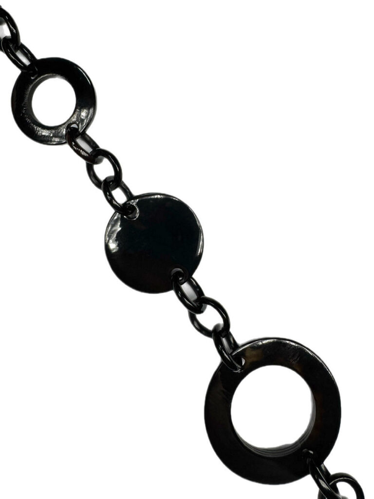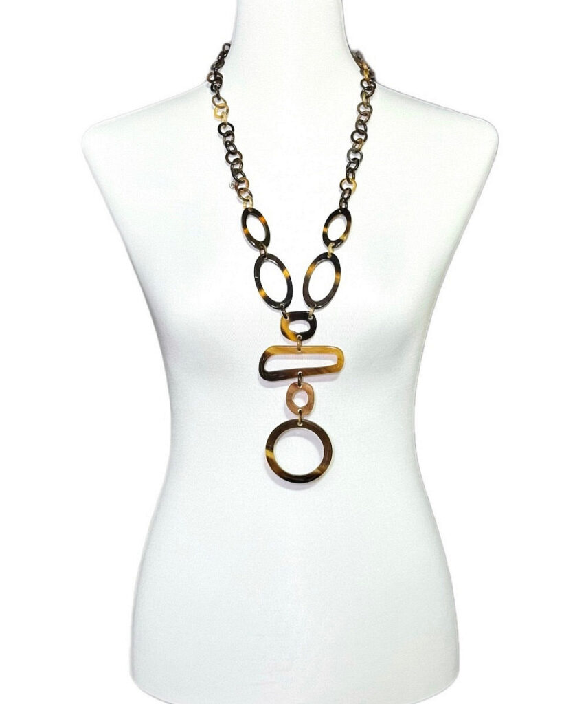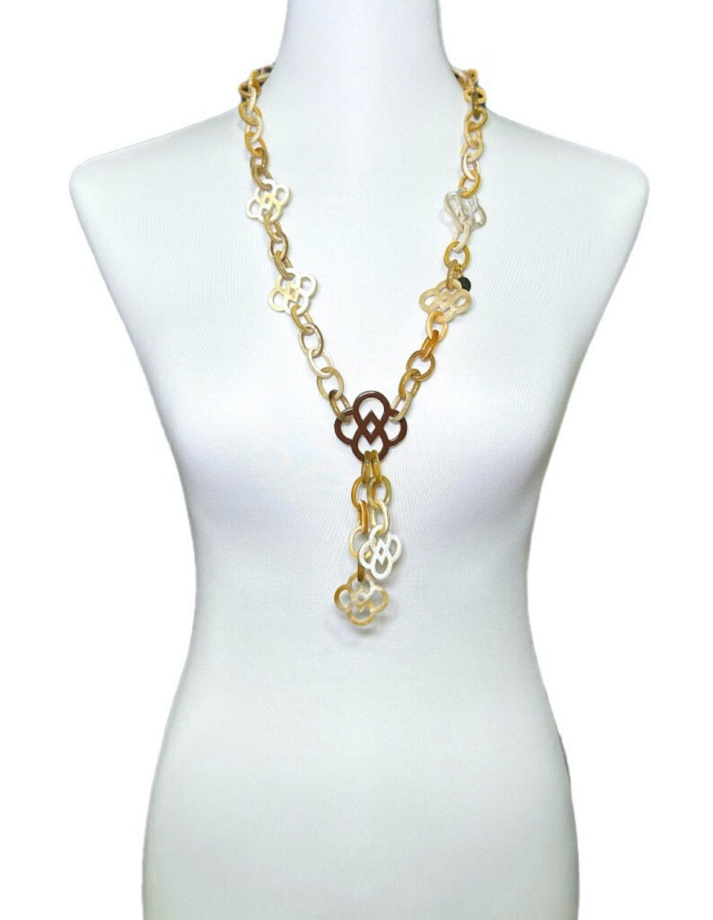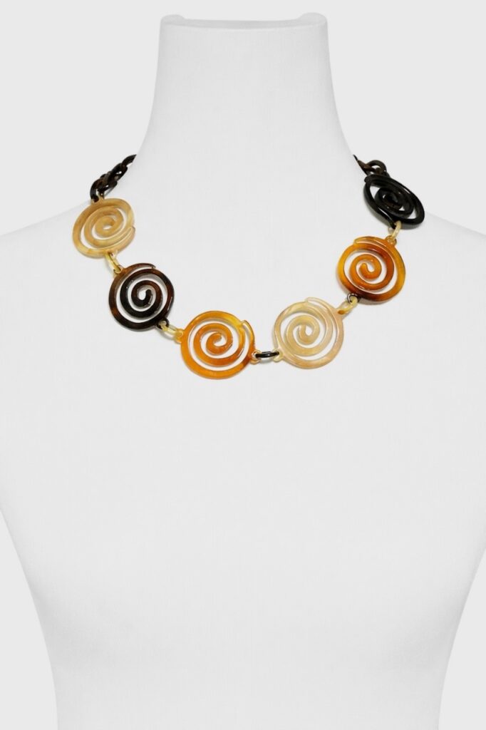 Gefertigt aus natürlichem Horn, ist jedes Stück ein Unikat. Die Kette ist in helleren oder dunkleren Naturtönen erhältlich – je nach Wunsch der Kundin. Die großen, harmonisch geformten Glieder verleihen dem Schmuckstück Charakter und zeitlose Eleganz.