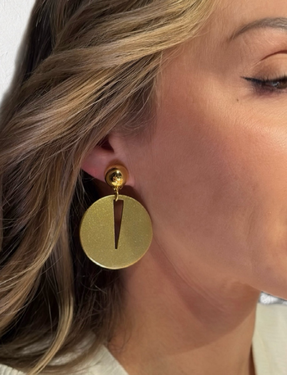 Der Kreis symbolisiert Ewigkeit und Harmonie, der Schlitz bringt dynamische Offenheit und Licht – perfekt für kurze Haare (hochgesteckt oder frei), aber auch bei langen Haaren ein besonderer Akzent.
