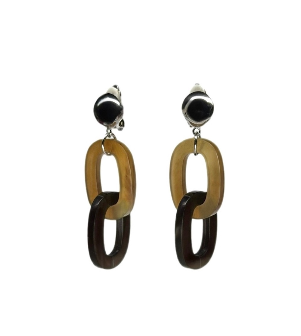 Leichte, lange moderne Clip-Ohrringe (Gesamtlänge 6,5 cm) mit verbundenen Gliedern – handgefertigt aus natürlichem Büffelhorn. Superleicht & bequem: Die sanften Clips sitzen bequem am Ohr, perfekt für den ganzen Tag, überall tragbar!