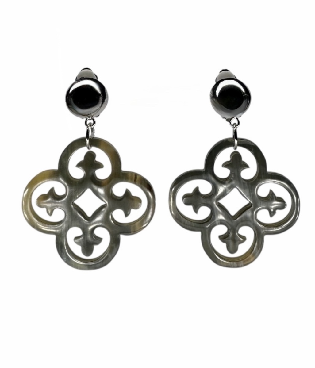 Handgefertigte Clip-Ohrringe mit antikem Motiv – inspiriert von uralten Symbolen der Erde und des Lebens. Gesamtlänge 5,5 cm.