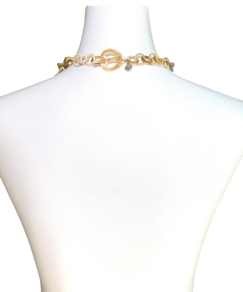 Die kurze Halskette Lumira ist aus hochwertigem Büffelhorn gefertigt und überzeugt durch ihr harmonisches Spiraldesign. Sie ist in zwei Farbvarianten erhältlich: Helles, leuchtendes Ivory und warmes, natürliches Braun.
