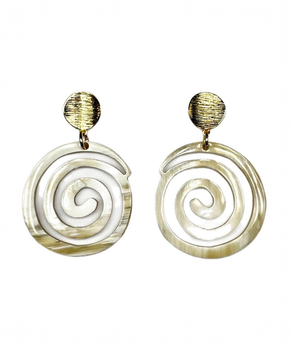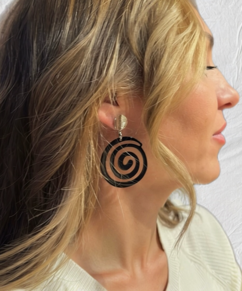 Entdecke pure Leichtigkeit und natürliche Eleganz: Die Lumira-Ohrringe von ELLA – handgefertigte Ohrringe in ikonischer Spiralenform aus Büffelhorn – sind superleicht, extrem bequem und etwa 6 cm lang.