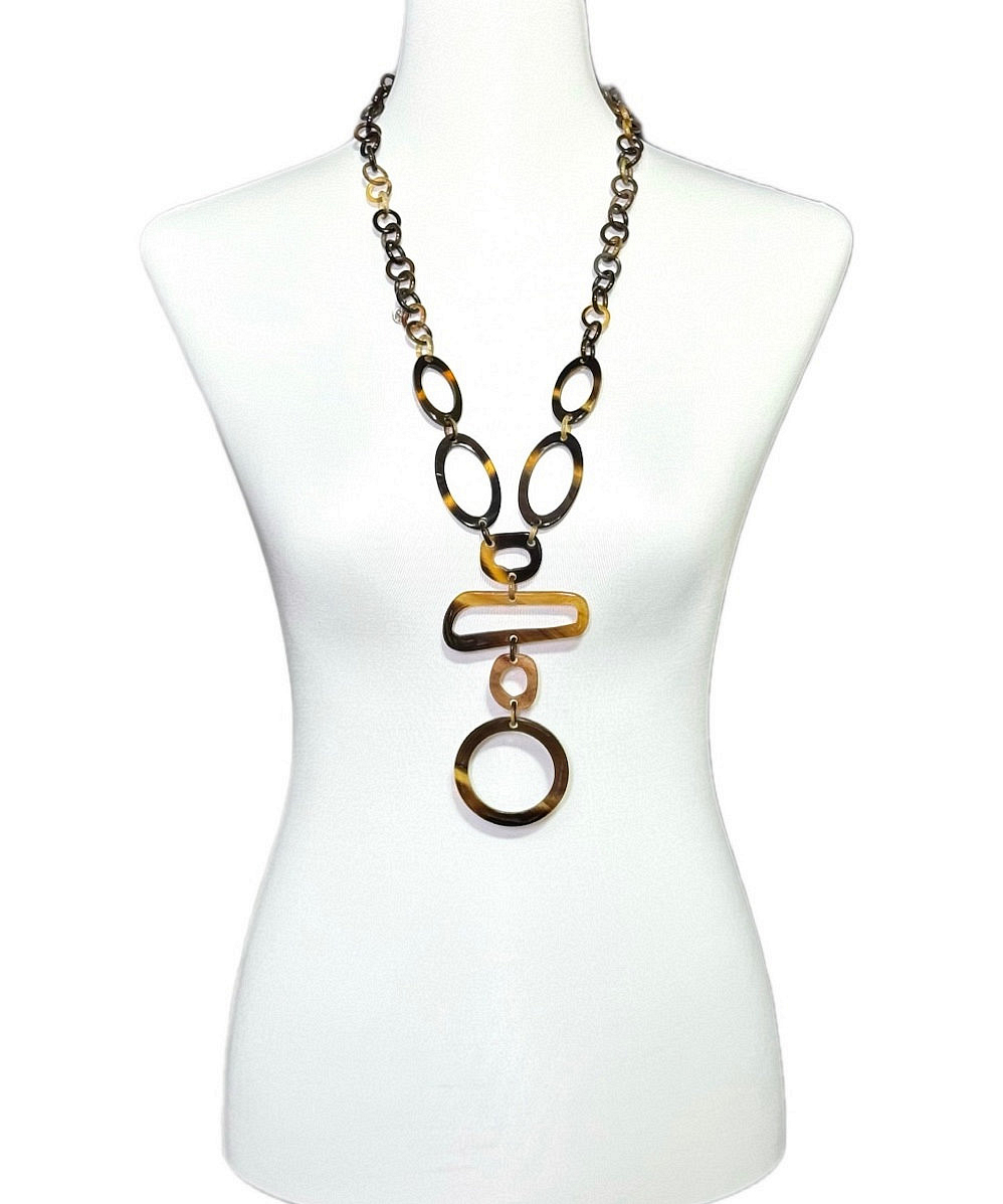 Unsere Sana Kette aus echtem, poliertem Büffelhorn in natürlichen warmen Brauntönen.