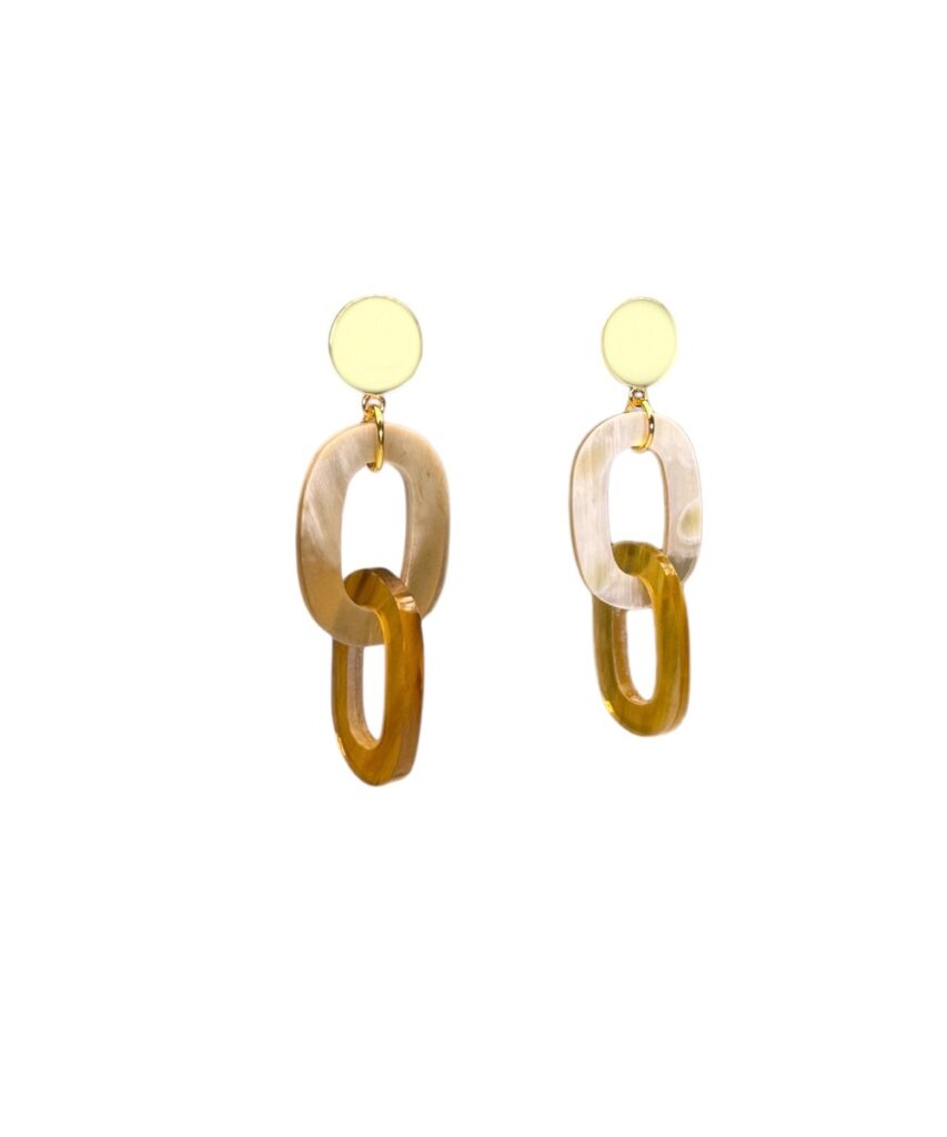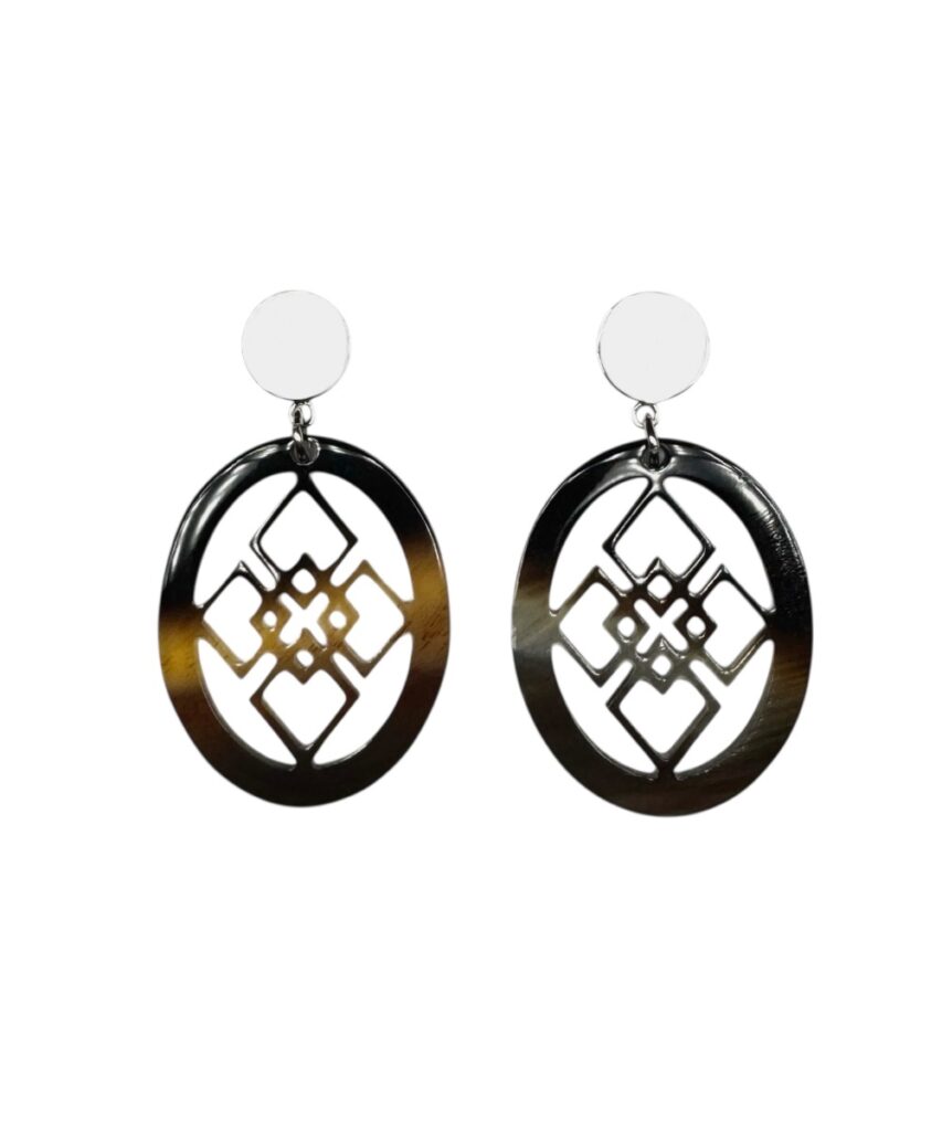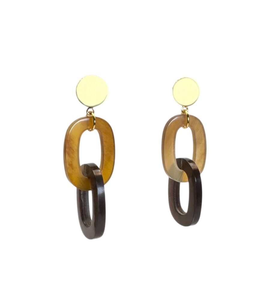 Ohrringe aus poliertem und lackiertem Büffelhorn in neutralen, feinen Farbtönen – vielseitig kombinierbar und ideal für jeden Tag. Die farbigen Modelle sind einseitig veredelt, während die Rückseite die natürliche Maserung des Horns sichtbar lässt. So wird jedes Paar zu einem individuellen Unikat.